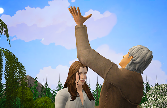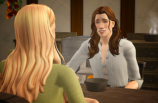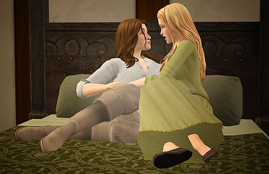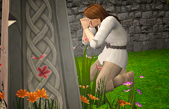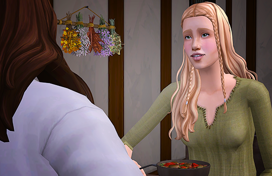 Caleb is never far from his prayer stone, but he does come in every now and then to spend time with his wife.