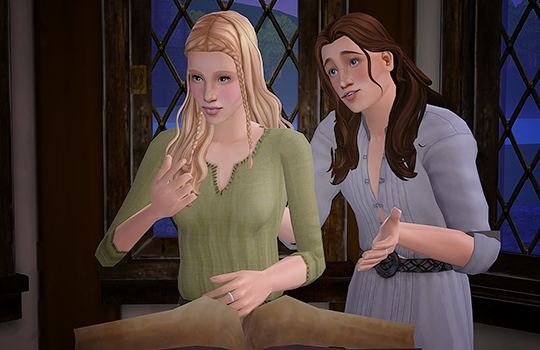 Linnea's sisters teased her endlessly when she fell in love with Caleb. Everyone in their small settlement knew the young innitiate to be "pleasing to the eye" (as Aveline put it), but he was also known as "not quite the brightest light in our dear Maker's chandelier." Still, he was kind, and devoted to Linnea, and even Evaine agreed that was really all that mattered.